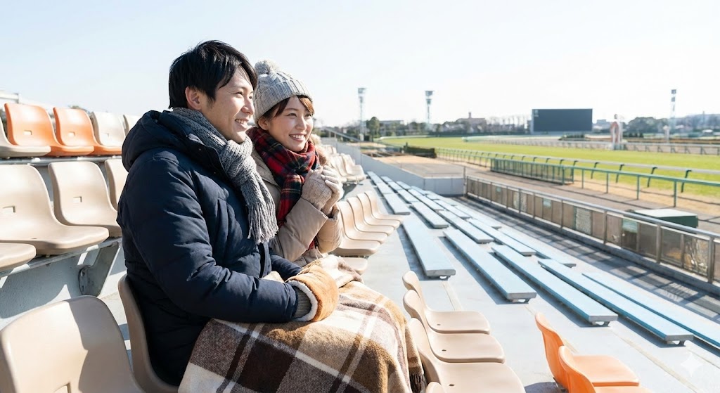 また、2026年現在はモバイルバッテリーで稼働する「電熱ベスト」や「電熱ブランケット」を愛用するファンも増えていますね。これがあるだけで、屋外での数時間が圧倒的に快適になります。耳当てや厚手の靴下、そして指先が出るタイプのフィッシンググローブなども、マークカードを書く際には非常に役立つアイテムです。「やりすぎかな?」と思うくらいの防寒対策をして、ようやく人並みに観戦できる、それが冬の府中のリアルだと考えてください。