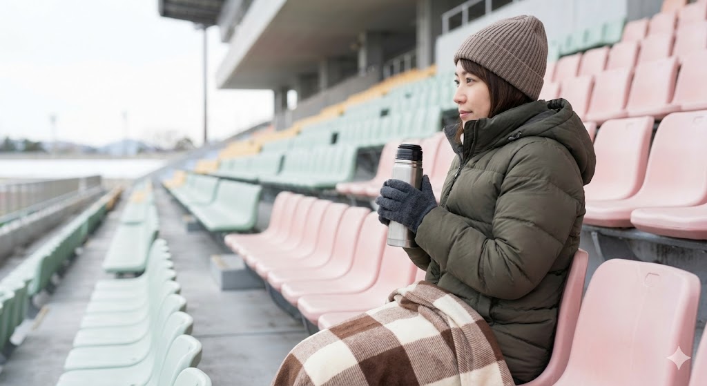 さらに「ブランケット」。これは単なる膝掛け以上の役割を果たします。屋外席では横から吹き込む風を遮る「防風壁」として機能するんです。腰に巻いてその上からコートを羽織れば、下半身の保温力は劇的に向上します。素材はフリースよりも、風を通しにくい裏ボアタイプや、アウトドア用のダウン素材のものが望ましいですね。これら三種の神器を組み合わせることで、初めて「屋外で5時間以上過ごす」ための土俵に立てるわけです。