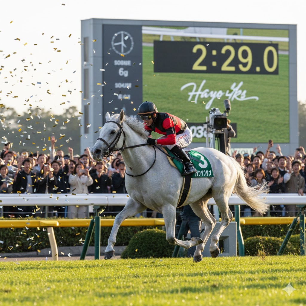 そして2024年、競馬史に残る驚異的なパフォーマンスが記録されます。白毛の古豪ハヤヤッコが、8歳という年齢、そして58.5kgというトップハンデを背負いながら、従来のレコードを0.9秒も更新する「2分29秒0」という驚愕のタイムで勝利しました。