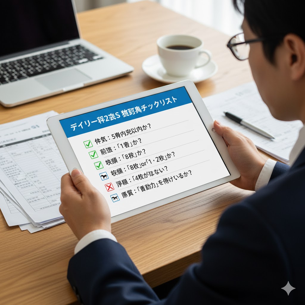 これまでの分析を統合し、デイリー杯2歳Sを制覇する可能性が高い馬の「勝利プロファイル」を、私なりのチェックリストとしてまとめてみました。
