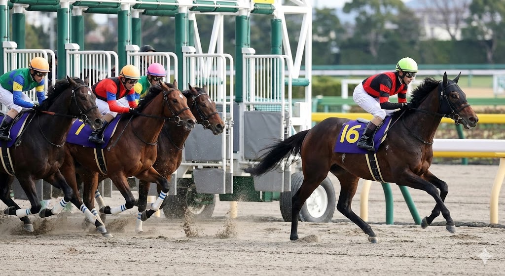 フェブラリーステークスが行われる東京ダート1600mは、日本でもここだけにしかない極めて特殊なレイアウトをしています。最大の特徴は、スタート地点が芝コース上に設置されていることですね。発走からダートコースに進入するまで、各馬は約150mから180mもの距離を芝の上で走ることになります。芝はダートに比べて路面抵抗が小さいため、ここでいかにスムーズに加速できるかが、その後のポジション取りに直結します。