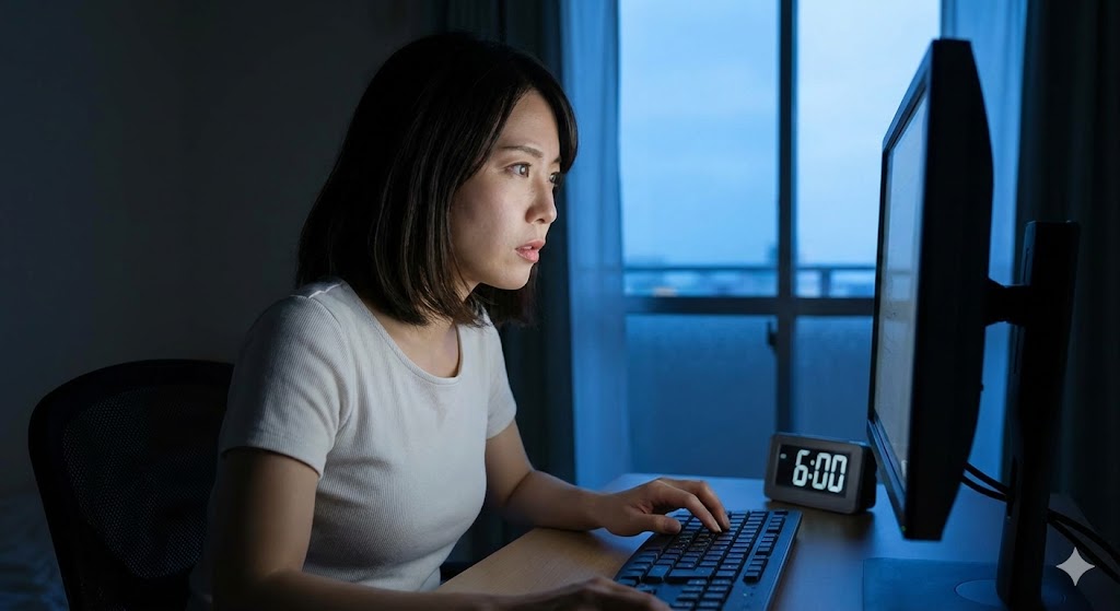 | 05:45 | PCを起動。Wi-Fiではなく、可能な限り有線LAN(カテゴリー6A以上推奨)で接続。余計なタブはすべて閉じる。 |