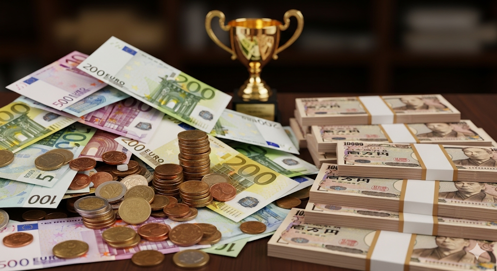 2024年および2025年における凱旋門賞の賞金総額は、500万ユーロに設定されています。これを日本円に換算すると、為替レートによって変動はありますが、およそ8億4,000万円(1ユーロ=168円で計算)という莫大な金額になります。これは日本の最高賞金レースであるジャパンカップや有馬記念を大きく上回る、まさに桁違いのスケールです。