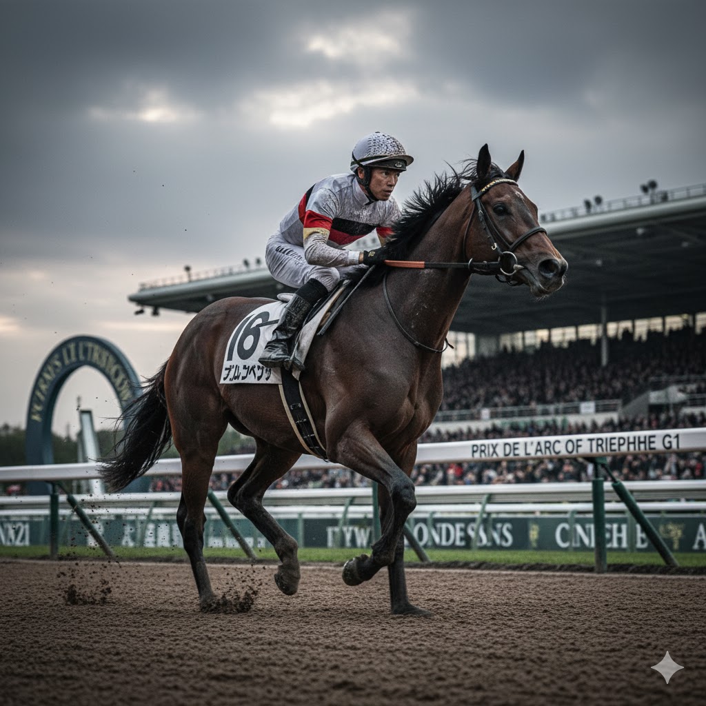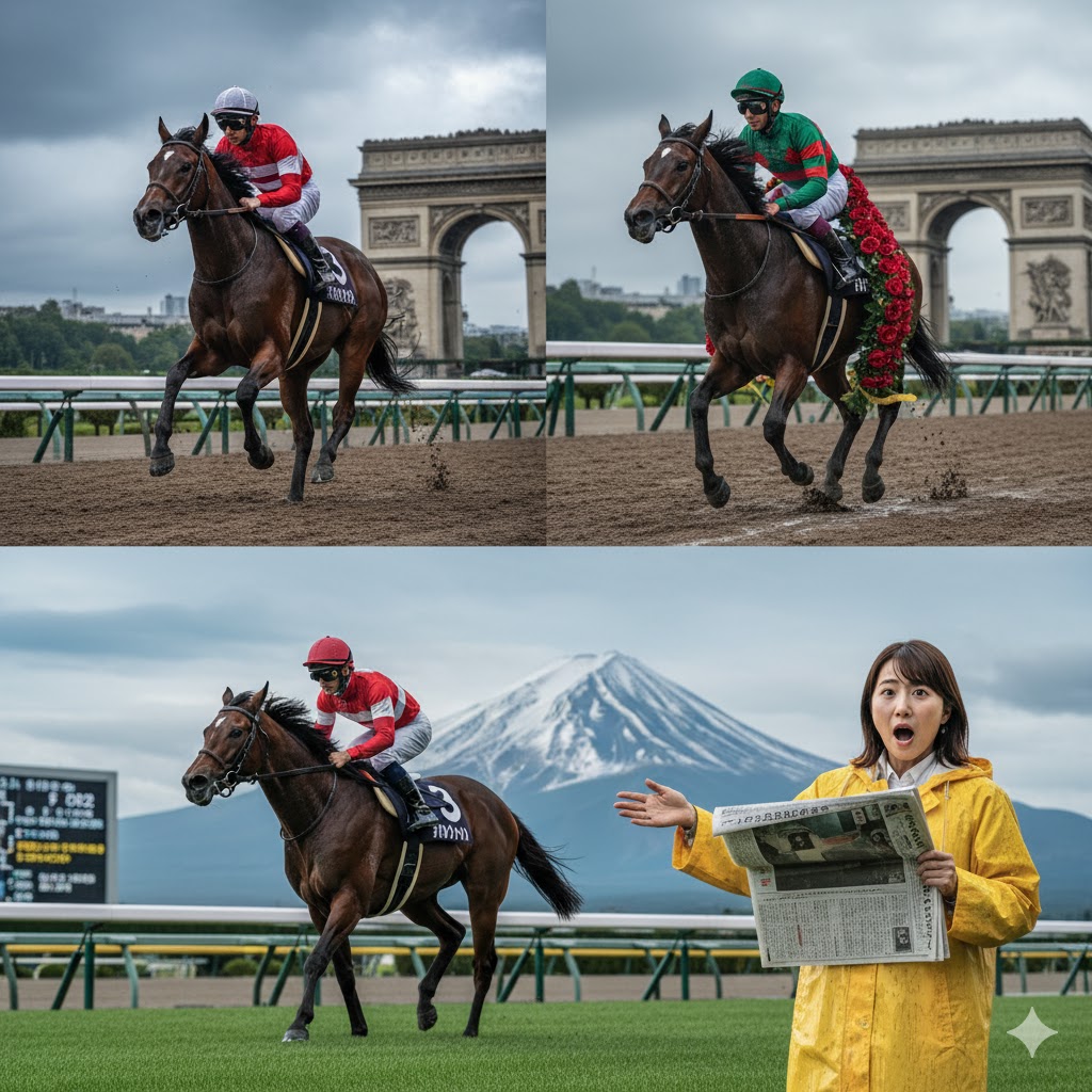 この日の馬場は、降り続いた雨の影響で「Très Lourd(トレスー:極めて重い)」と発表される、非常にタフなコンディションでした。スピード偏重の馬が次々と脱落していく中、トルカータータッソはドイツ産馬特有のスタミナとパワーを存分に発揮。単勝72倍という、デインドリームをも上回る記録的な人気薄の評価を覆し、ゴール前で粘る先行馬を見事に差し切りました。
