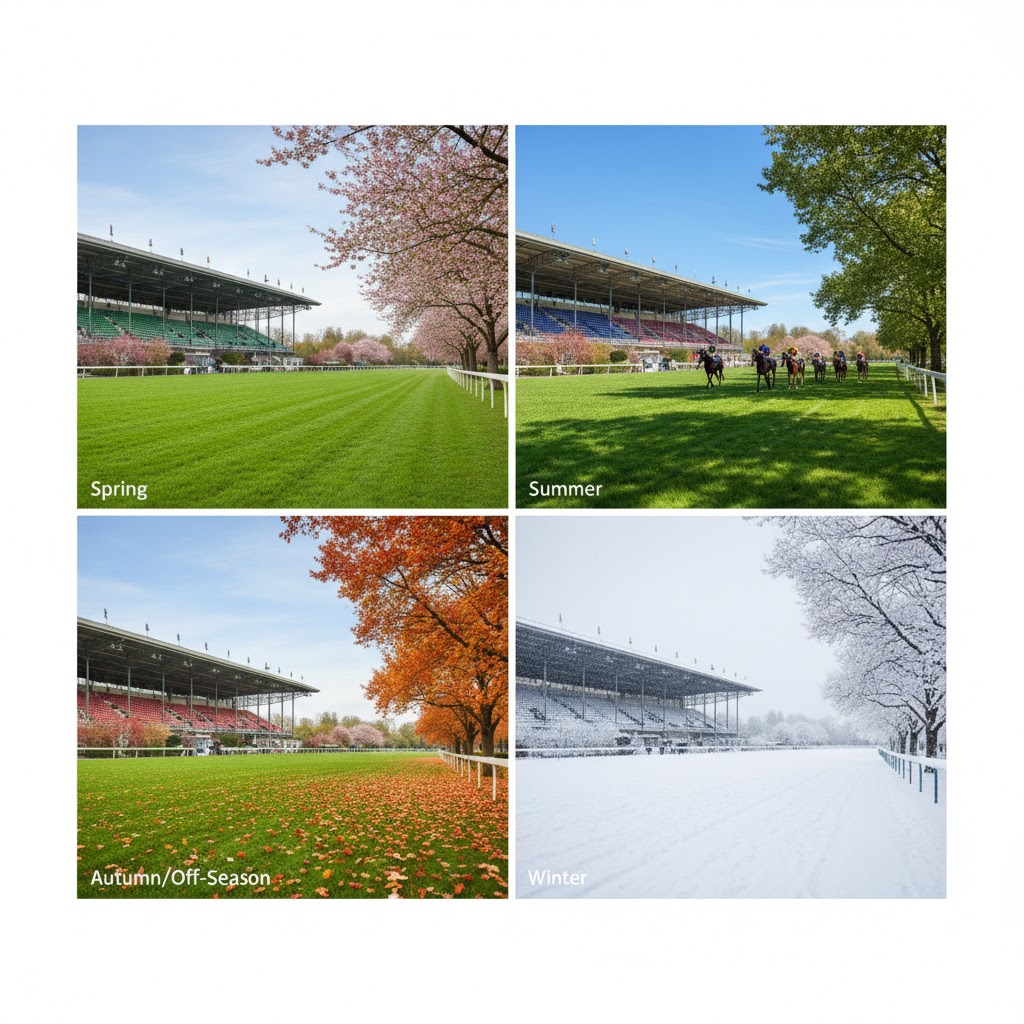 ドイツの平地競馬シーズンは、中央ヨーロッパの気候を反映し、おおむね3月下旬から11月上旬頃までとなっています。冬季(11月中旬から3月)は馬場コンディションの維持が難しいため、オフシーズンとなります。
