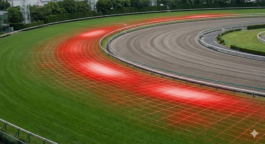 もし前半3ハロンが「33秒5」を切るような激流になった場合、AIのスタミナ消費モデルは、ルガルのゴール前ラスト1ハロンにおける失速率(Deceleration Rate)が急激に跳ね上がると予測します。特にゴール前の急坂で「止まる」リスクを検知した場合、VUMAのような穴狙いAIは、彼をあえて「危険な人気馬」として評価を下げる(無印にする)可能性があります。