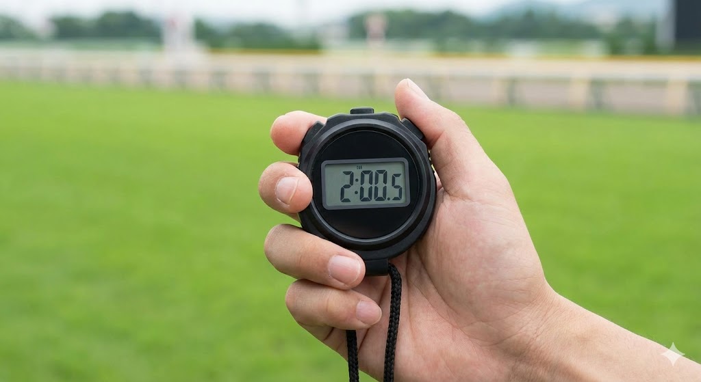 レースのレベルを客観的に測る上で、最も信頼できる指標の一つが「走破タイム」です。現在のホープフルステークスのレコードタイムは、2023年に牝馬のレガレイラが記録した2分0秒2です。