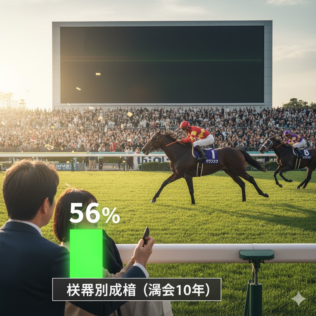 この[複勝率56%]という数字は、単なる偶然の偏りではなく、東京芝2400mというコースレイアウトがもたらす「構造的な優位性」だと考えられます。
