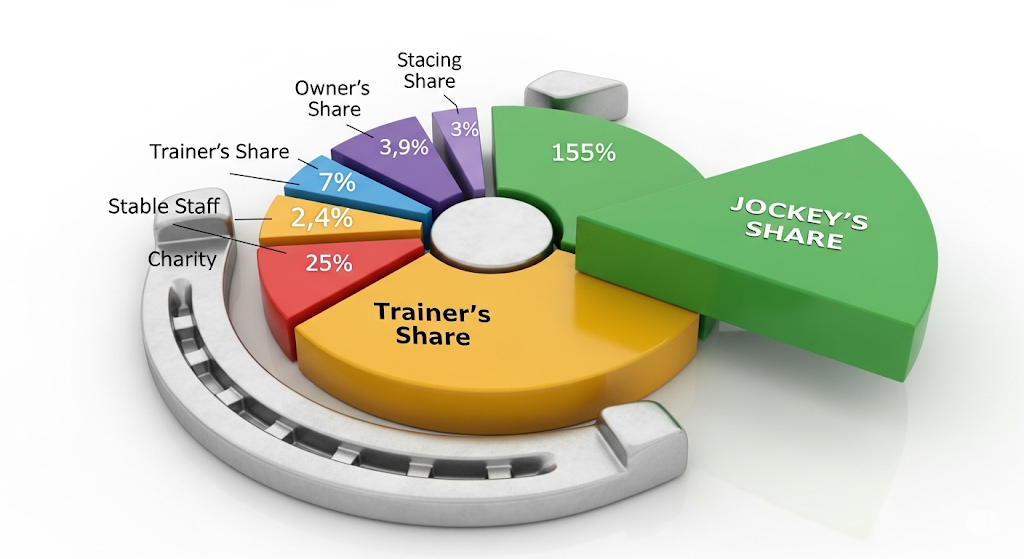 レースで獲得した賞金は、馬主が80%、調教師が10%、騎手が5%、厩務員が5%という割合で配分されるのが基本です。つまり、騎手は馬主から自身の取り分を分けてもらっている形になります。