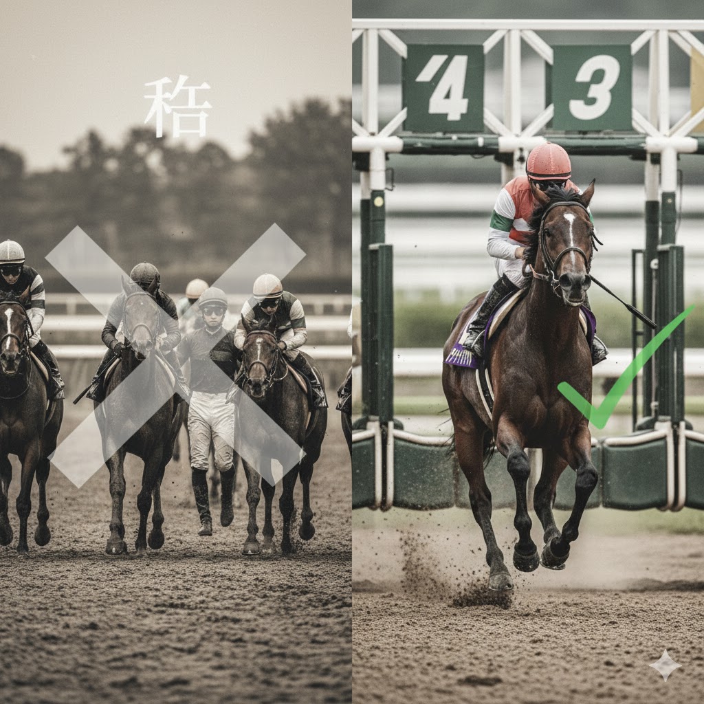 | 6枠〜8枠 | 絶望的 | 「消し」のゾーン。 特に6枠は過去10年で勝ち星ゼロ。8枠も人気馬が頻繁に飛んでいます。外枠から勝つには、抜けた能力か展開の助けが必要です。 |