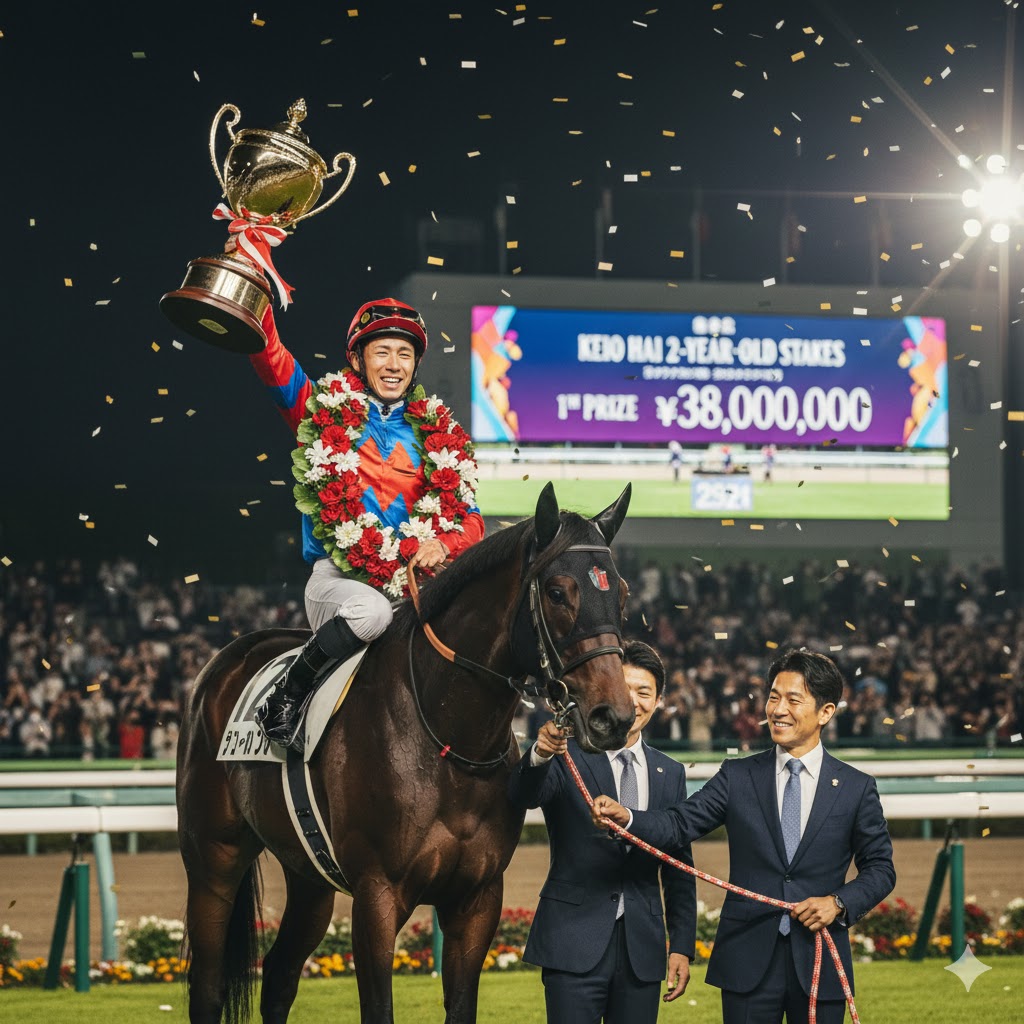 本競走の勝利がもたらす報酬は、非常に大きいものがあります。2024年時点での1着賞金は3800万円で、これは他の2歳GII競走と比較しても高水準です。