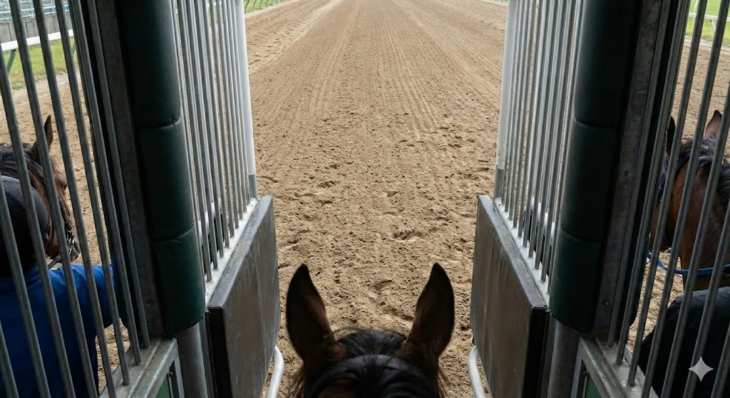 まず、スタート地点の特性が挙げられます。中山2000mのスタートはホームストレッチの坂の途中。ここから最初の1コーナーまでは約405mありますが、登り坂から始まるため、多くの馬が脚を温存しようと控えます。この「スローになりやすい」環境下では、ゲートを出てから一歩も外に寄れず、最短距離をロスなく進める1枠が、最も楽に好位を確保できる聖域となるのです。