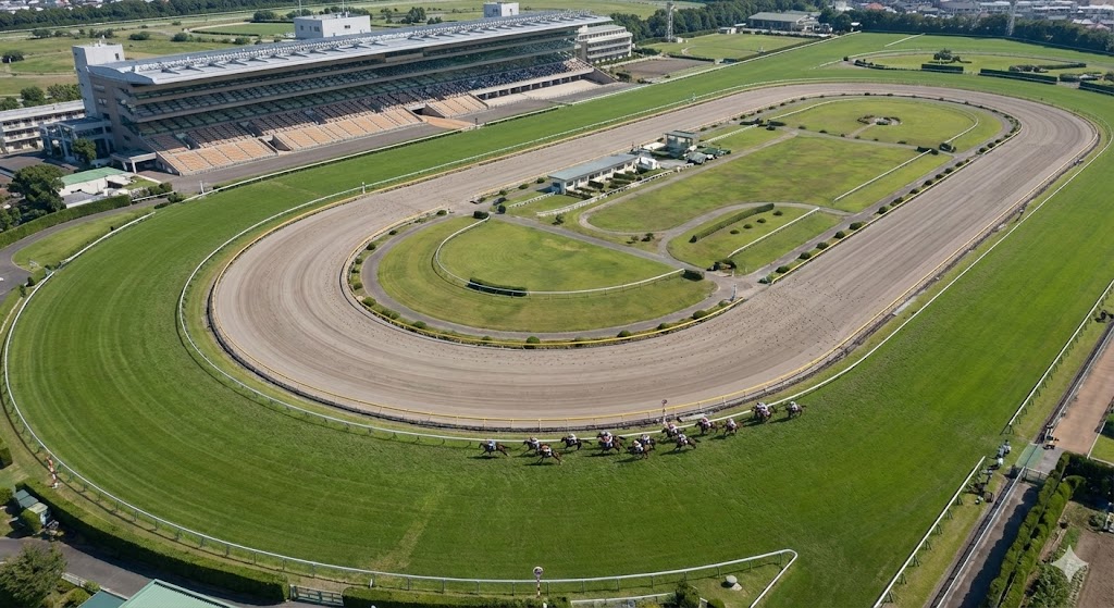 舞台となる東京芝1800mは、JRA全コースの中でも屈指の特殊性を誇るコースレイアウトです。最大の特徴は、1コーナーと2コーナーの間にある「ポケット」と呼ばれる地点からスタートすること。スタート直後にすぐ2コーナーに進入するため、最初のコーナーまでの距離が約160メートルと極めて短く、各馬は斜めにコーナーへ入っていく形になります。多頭数なら外枠が不利になりますが、共同通信杯は例年10頭前後の少頭数で行われることが多いため、枠による物理的な不利よりも「道中の折り合い」がより重要になってきます。