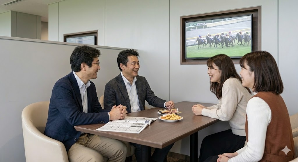 友人とワイワイ楽しみたい、あるいは家族でゆっくり過ごしたいという場合に最適なのが、ステーションサイドに用意された多彩なグループ席です。ここには、半個室型の「駒見小路」や、ゆったりとしたソファで観戦できる「Lソファ」、そして二人で落ち着いて予想できる「ペアテーブル」など、多様な観戦スタイルに合わせた席が用意されています。これらの席は1名での利用が制限されているため、一人のファンが申し込むスマートシート等とは異なる独自の需給バランスが生まれます。つまり、特定の日においては、これらのグループ席のほうが京都記念 指定席 倍率が低くなる逆転現象が起こる可能性もあるんです。