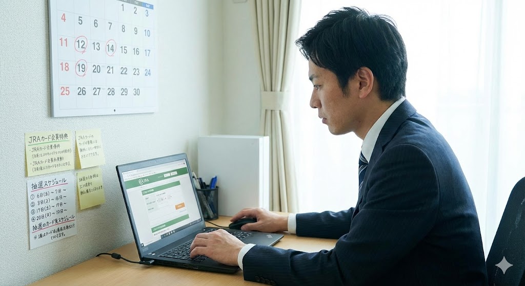 「何度も申し込んでいるのに、京都記念の指定席が全く当たらない!」と嘆いている方の多くは、もしかしたら一般会員として戦っていませんか?残念ながら、JRAの予約システムにおいてはJRAカード(クレジットカード)を持っているかどうかが、当選確率を分ける絶対的な境界線になっています。JRAカード会員には、一般会員よりも1週間早く実施される「先行抽選」への参加権が与えられます。この先行枠で全体の席の相当数が割り当てられるため、一般会員が申し込む頃には、すでに残された席数はごく僅かになっているのが現実です。