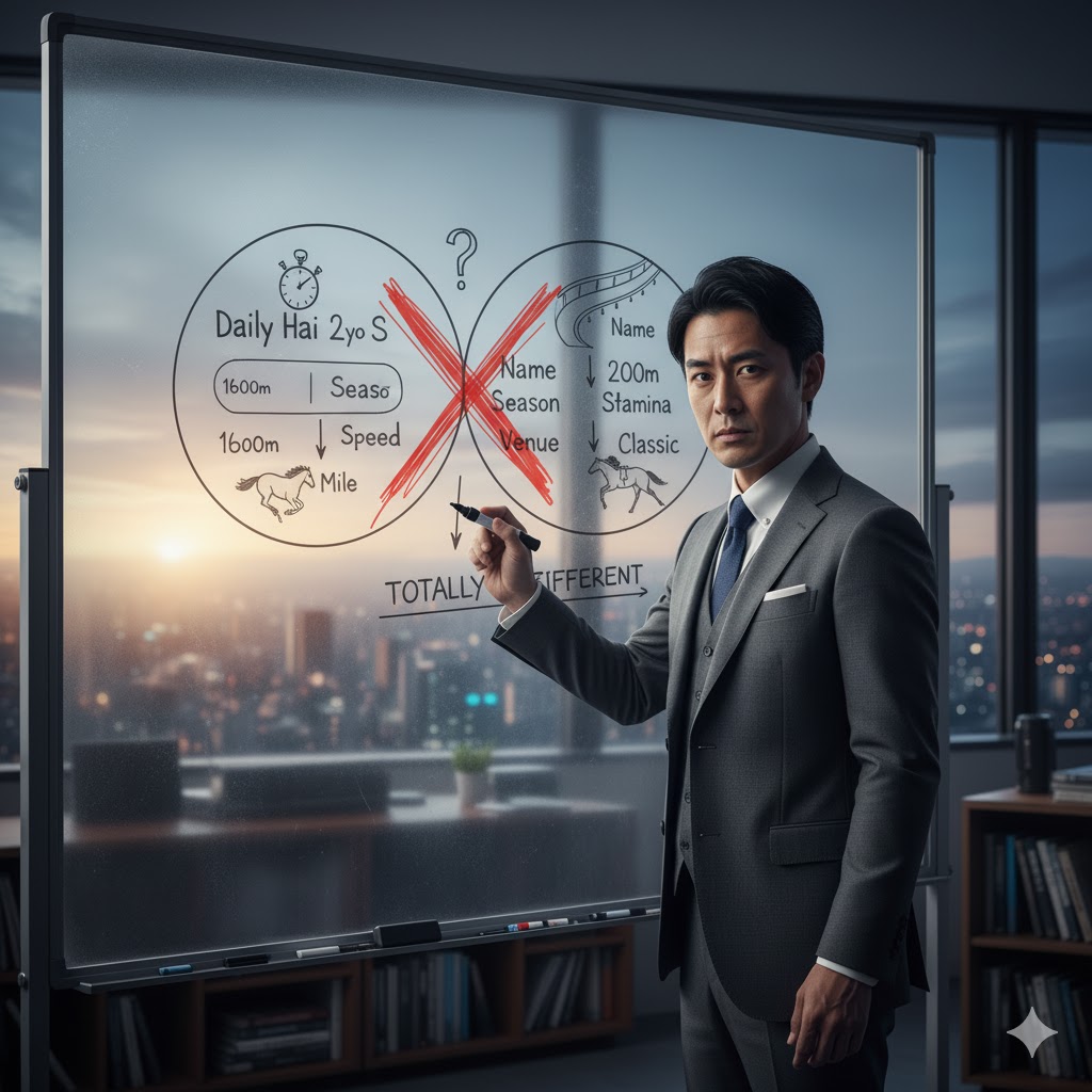 結論:デイリー杯2歳S(1600m)は、京都2歳ステークス(2000m)の参考レースとしては、全く適していません。名前が似ているだけの「別路線のレース」として、検索結果に出てきてもノイズとして処理し、完全に切り離して考える必要がありますね。