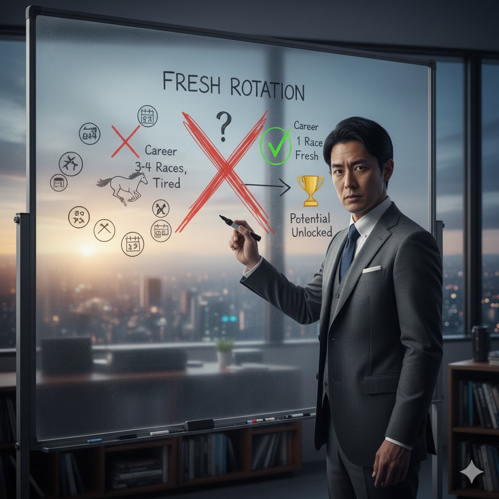 近年の2歳重賞、特にポテンシャルが問われる中距離戦では、「フレッシュローテーション」という考え方が非常に重要になっていると感じます。
