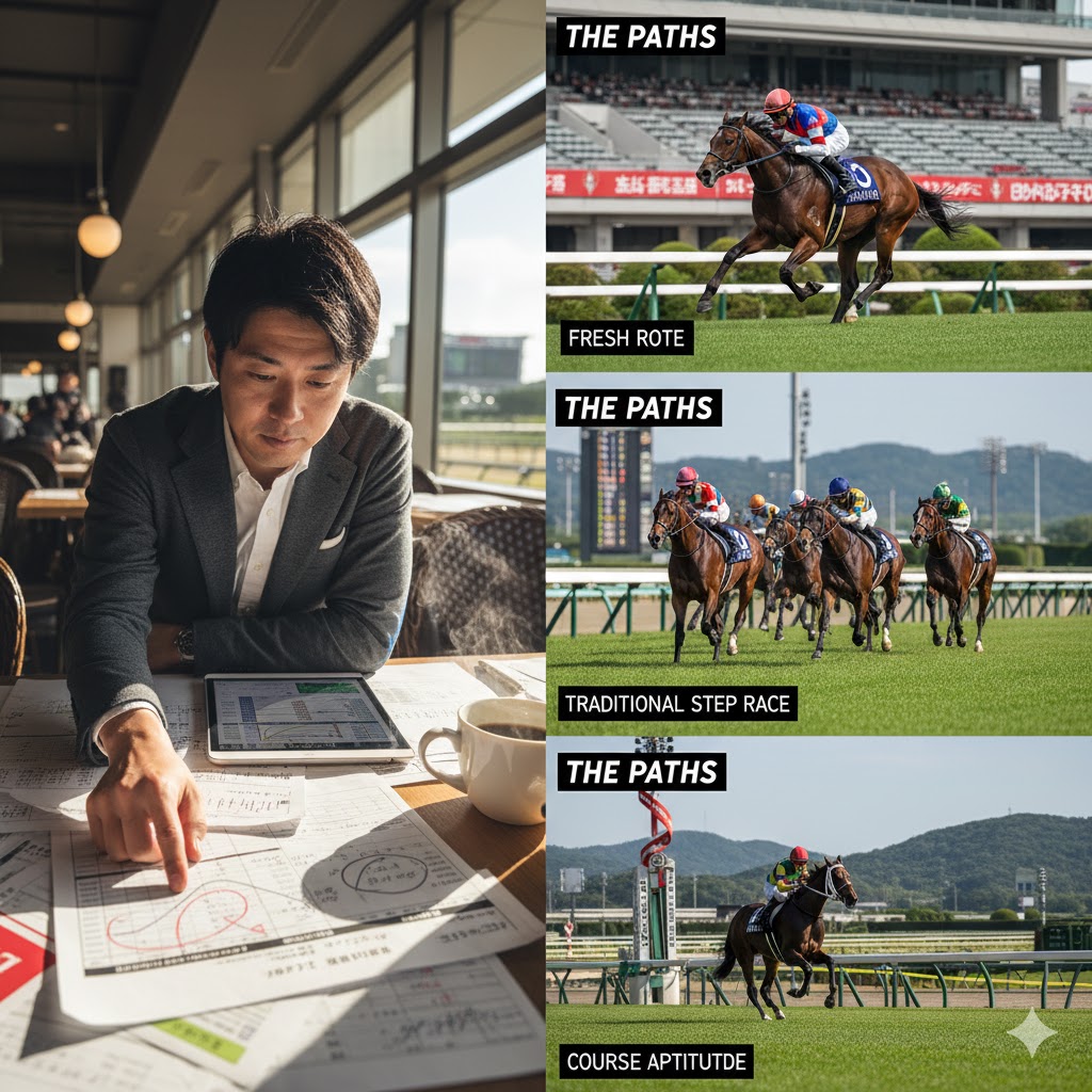 - 王道ステップ: 「野路菊ステークス(OP・1800m)」(2024年2着馬) → レースレベルが高く、中距離適性の指標となる。前走2着でも可。