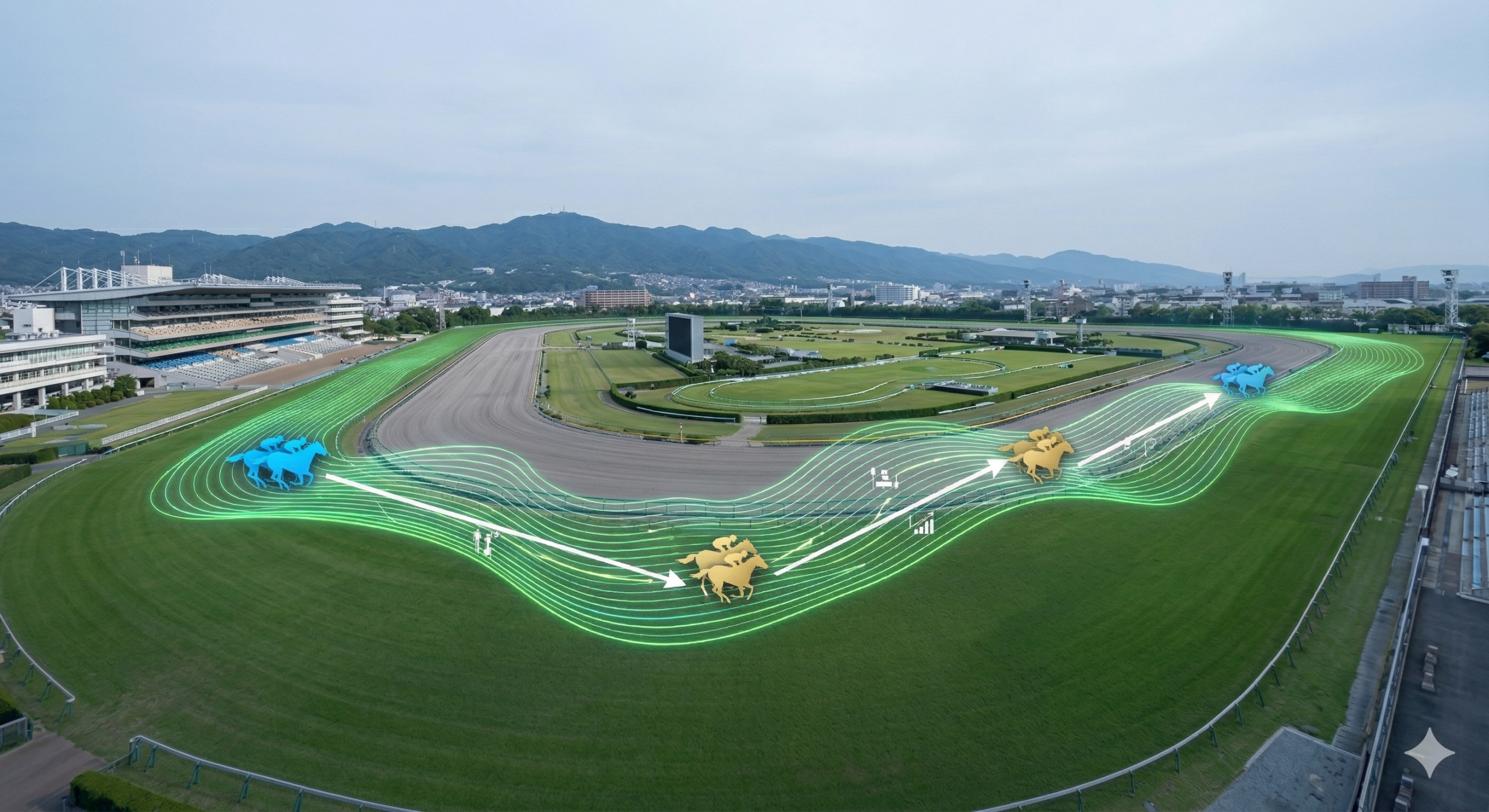 2026年3月28日に行われる予定の第73回毎日杯。この時期の阪神競馬場は、開催が進んで内側の芝がボコボコと傷み始めている時期です。最新のAIモデルは、気象庁のデータと連動して当日の降水確率や含水率を予測し、さらに「トラックバイアス(馬場の有利な通り道)」をリアルタイムで補正します。