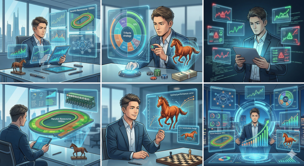 結論として、2026年の毎日杯で勝利を掴むためのステップをまとめます。まず、阪神1800m特有のスローペース上がり勝負に適応できる馬を、AIのラップ解析から絞り込みます。次に、枠順と当日の馬場コンディションを確認し、外枠の距離損や内馬場の荒れを考慮した「最終補正」をかけます。そして最後に、AIの算出する勝利確率と現実のオッズを比較し、最も資金を投じるべき「歪み」のある買い目を決定するのです。