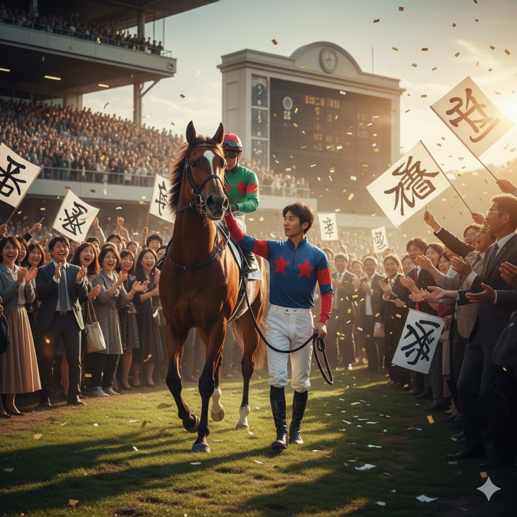 しかし、彼はスタートからハイペースで飛ばし、一時は後続に10馬身以上の大差をつけます。直線に入ってもその脚色は衰えず、並み居る強豪たちに影すら踏ませない圧巻の逃げ切り勝ちを収めました。この勝利は、競馬というスポーツが持つ筋書きのないドラマとスペクタクルを体現したものとして、今なお語り継がれています。