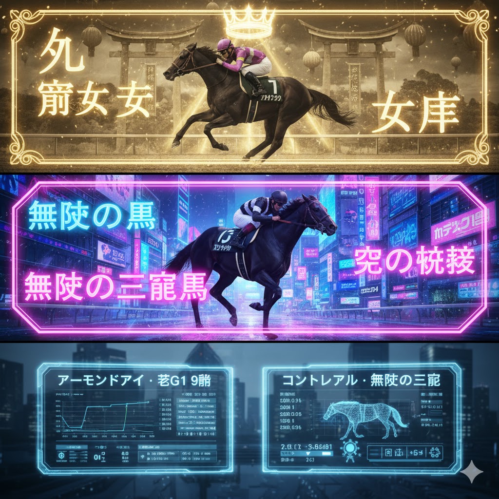 平成の終わりから令和にかけて、競馬史に輝かしい記録を打ち立てた2頭の名馬がいます。アーモンドアイとコントレイルです。彼らの二つ名もまた、その偉業を端的に表しています。