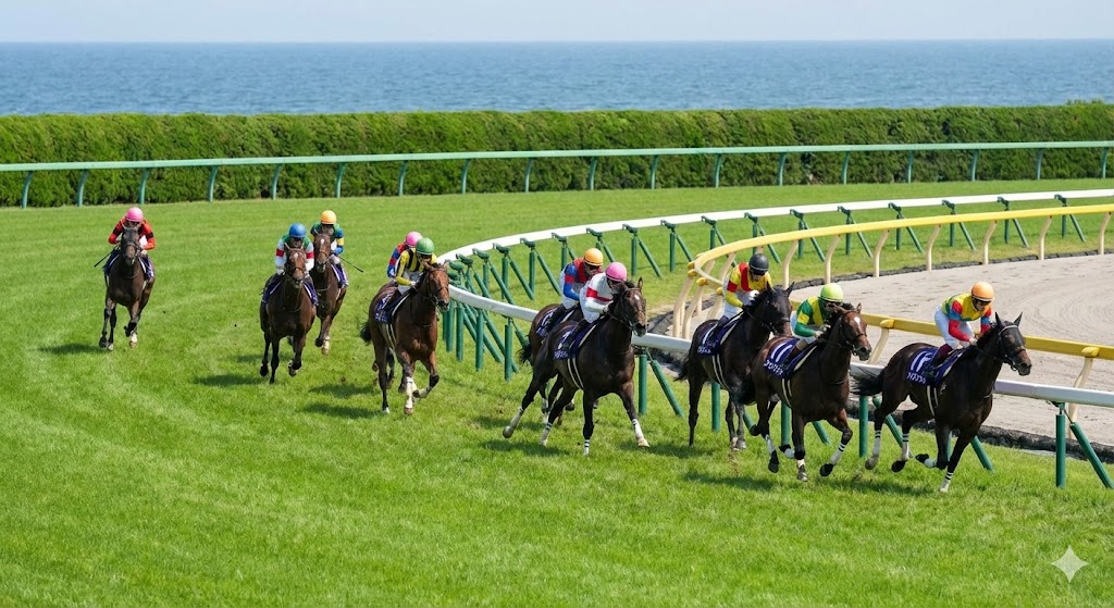 春のクラシック戦線で苦しんだ彼女を救ったのは、北の大地、函館の芝でした。2025年6月の1勝クラス戦(芝1800m)。古馬との初対戦という厳しい条件でしたが、横山和生騎手を背に、他馬を寄せ付けない圧倒的な走りで勝利を収めました。函館の芝は、本州の芝に比べて重く、パワーが要求される「洋芝」ですが、これがマイスターヴェルクの血統的適性にピタリと嵌まったわけです。1分46秒8という勝ち時計も、当時の馬場コンディションを考えれば極めて優秀でした。