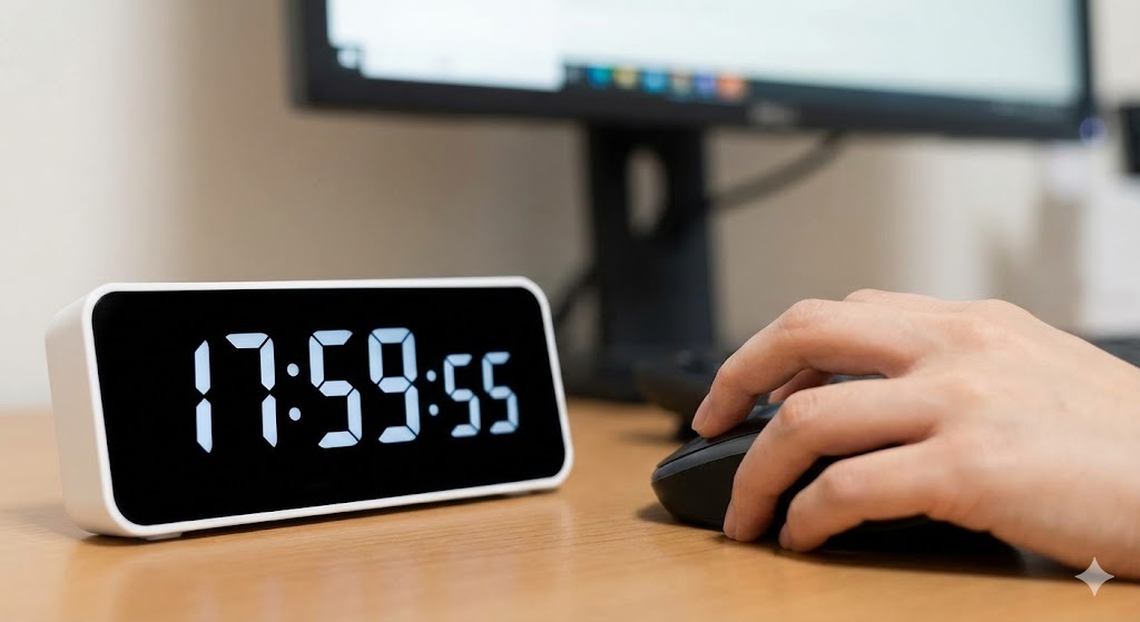 - 時報の準備:PCの時計は数秒ズレていることがあります。117の時報や、NICT(日本標準時)のサイトを開き、秒単位で正確な時間を把握してください。