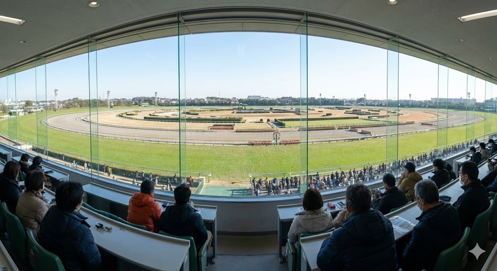 上からの視点だと、まるでジオラマを見るようにレース展開が分かりますし、騎手がどのタイミングで仕掛けていくのかも手に取るように分かります。屋内席なら暖房も効いているので、寒さを気にせずじっくり分析したい派には最高です。