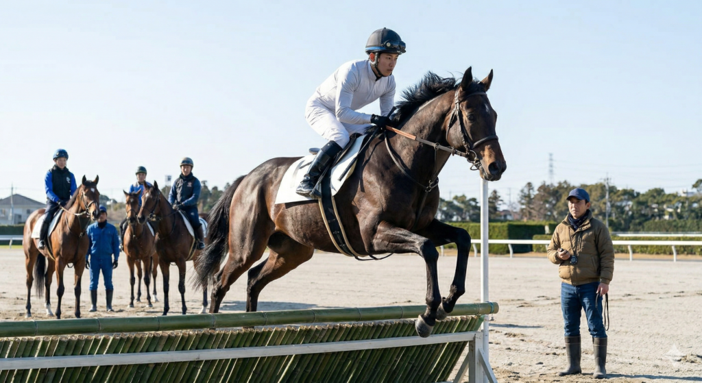 - ステップレースの活用:本番前に中山のコースを実際に走らせ、あの特殊な「8の字コース」と「固定障害」を馬自身に学習させること。