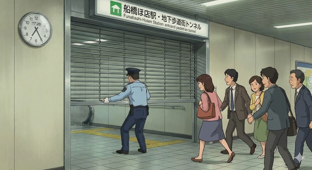 船橋法典駅の専用地下道閉鎖に注意したい17時20分の壁