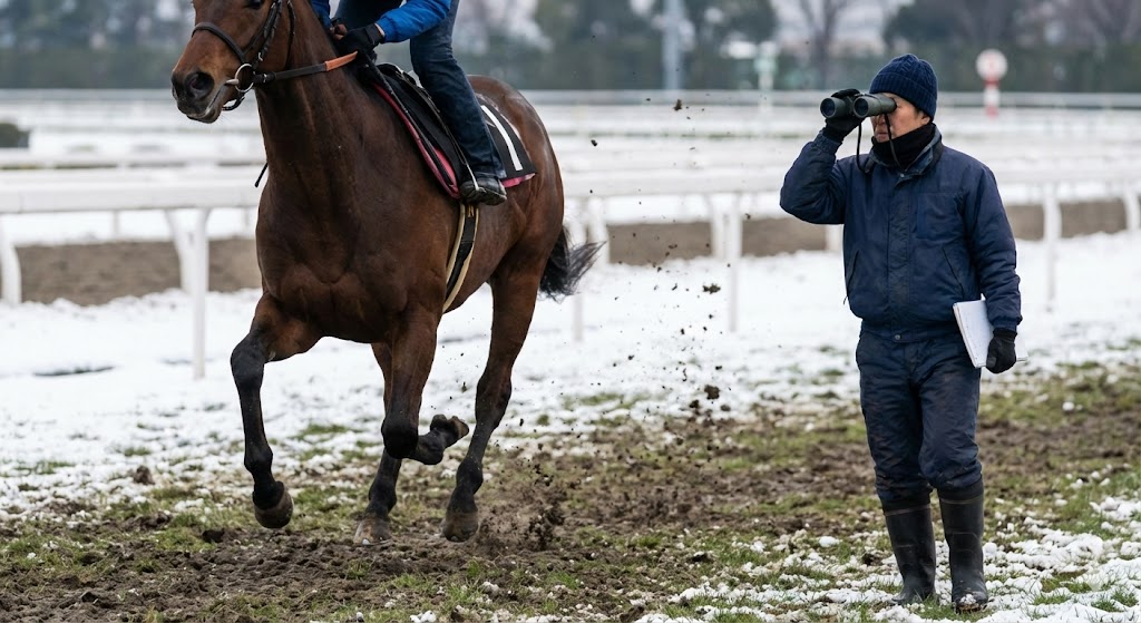 ただし、一点だけ懸念すべきなのは精神面の脆さです。彼は非常に繊細な気性を抱えており、普段と異なる環境に敏感に反応します。雪が舞う視界不良や、除雪機の騒音、発売中止によって殺気立った(?)スタンドの雰囲気など、イレギュラーな要素が彼をパニックに陥れるリスクは否定できません。だからこそ、発売開始後のオッズに飛びつく前に、パドックでの「瞳の落ち着き」を確認することが不可欠です。もし彼が周囲の喧騒をどこ吹く風で、一歩一歩深く地面を噛みしめるように歩いているなら、それは「冬の淀の覇者」へのカウントダウンだと確信して良いでしょう。