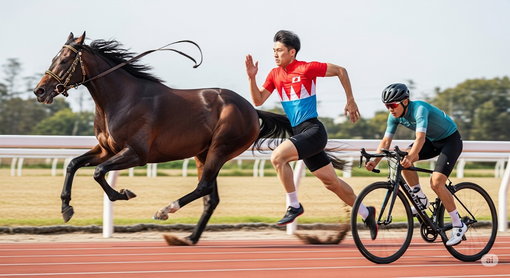一方で、競馬の主役であるサラブレッド種の平均速度は、これを遥かに上回ります。レース中のサラブレッドは、常に時速60km前後という、自動車に匹敵するスピードで走り続けます。人間の一流スプリンターが時速約36km、陸上最速の動物チーターが時速約110kmで走ることを考えると、馬、特にサラブレッドがいかに速い動物であるかがわかります。
