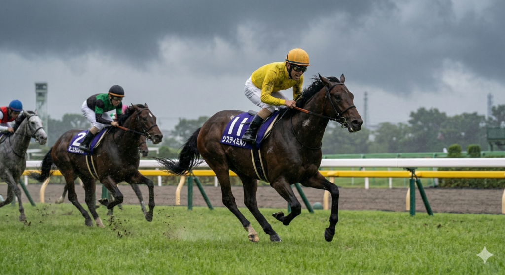 他馬が大きく外を回る中、内側をスルスルと進んだゴールドシップは、直線の入り口では気がつけば先頭に。荒れた馬場をものともしないタフさと、常識を嘲笑うかのような豪快な立ち回りは、まさにゴールドシップという馬の奔放なキャラクターを象徴するものでした。記録としての勝ち時計以上に、その「型破りな強さ」がファンの記憶に強く残っているのは当然かもしれません。