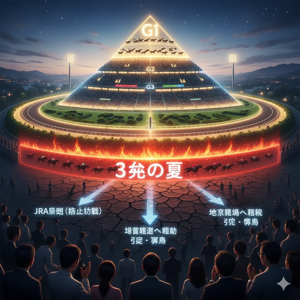 このように、「3歳夏の未勝利戦終了」というのは、日本競馬界における競走馬のキャリアを振り分ける、経済ピラミッドの最初の巨大なフィルターとして機能しているわけです。このシステムを知っていると、夏の未勝利戦を見る目も少し変わってくるかもしれません。