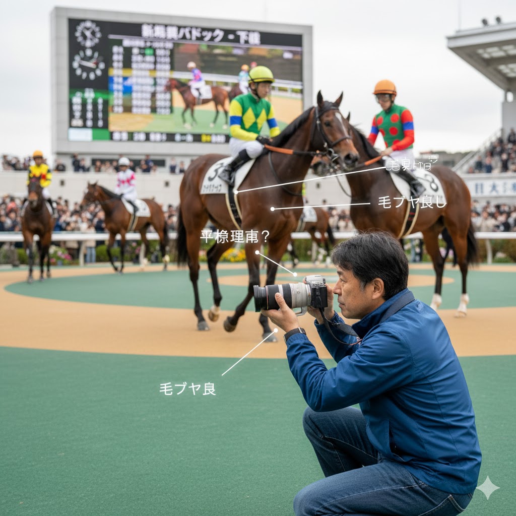 例えば、馬が少しチャカチャカして見えたり、キョロキョロしたりしているとします。でも、それがその馬の「平常運転(いつもの性格)」なのか、それとも「初めての場所で緊張している(イレ込み)」のか、初見で判断するのはプロでも至難の業です。その馬の「平熱」が分からないので、当日の「熱っぽさ」がどの程度深刻なのか判断できないんですよね。