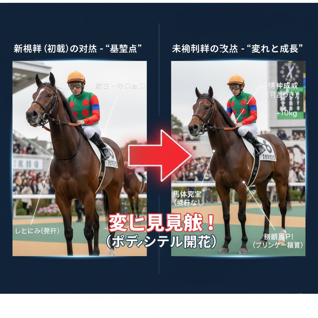 新馬戦とは対照的に、未勝利戦は「狙い目」のレースだと私が考える理由は、まさに「一度見たことがある馬」がほとんどだからです。新馬戦で得た「基準点(ベースライン)」があるからこそ、前走からの「変化」や「上積み」を見抜くことができるわけです。