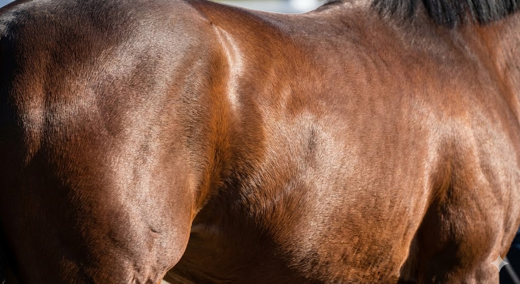 いわゆる「ダブル」と呼ばれるこの状態は、背中の筋肉が発達し、体幹がしっかりと安定していることを示しています。京都の芝マイル戦、特に外回りコースは、第3コーナーの坂の下りを利用して加速し、長い直線で一気に脚を伸ばす必要があります。この時、背中の筋肉がしっかりしていないと、加速の衝撃に体が負けてしまい、バラバラな走りになってしまいます。上から見て、背中から腰にかけて筋肉がパンと張っている馬は、京都の軽い芝で鋭い切れ味を発揮する準備ができている「完成度の高い」馬と言えますね。