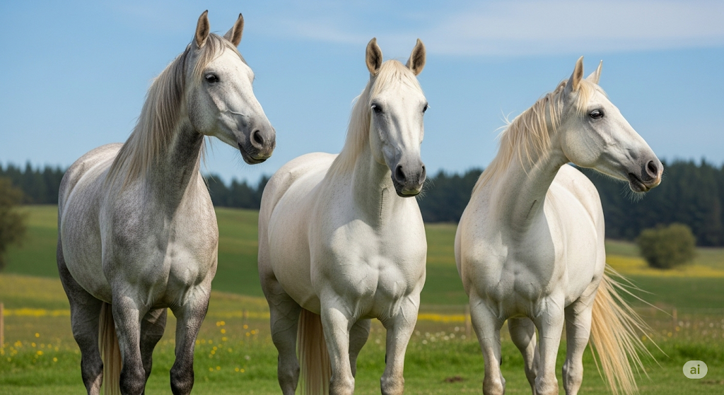 - アルビノとの違い:アルビノはメラニンを生成できないため、瞳孔が赤く見えます。一方、白毛馬はメラニンを生成できるため、瞳は黒色や茶色です。皮膚も色素を持っています。