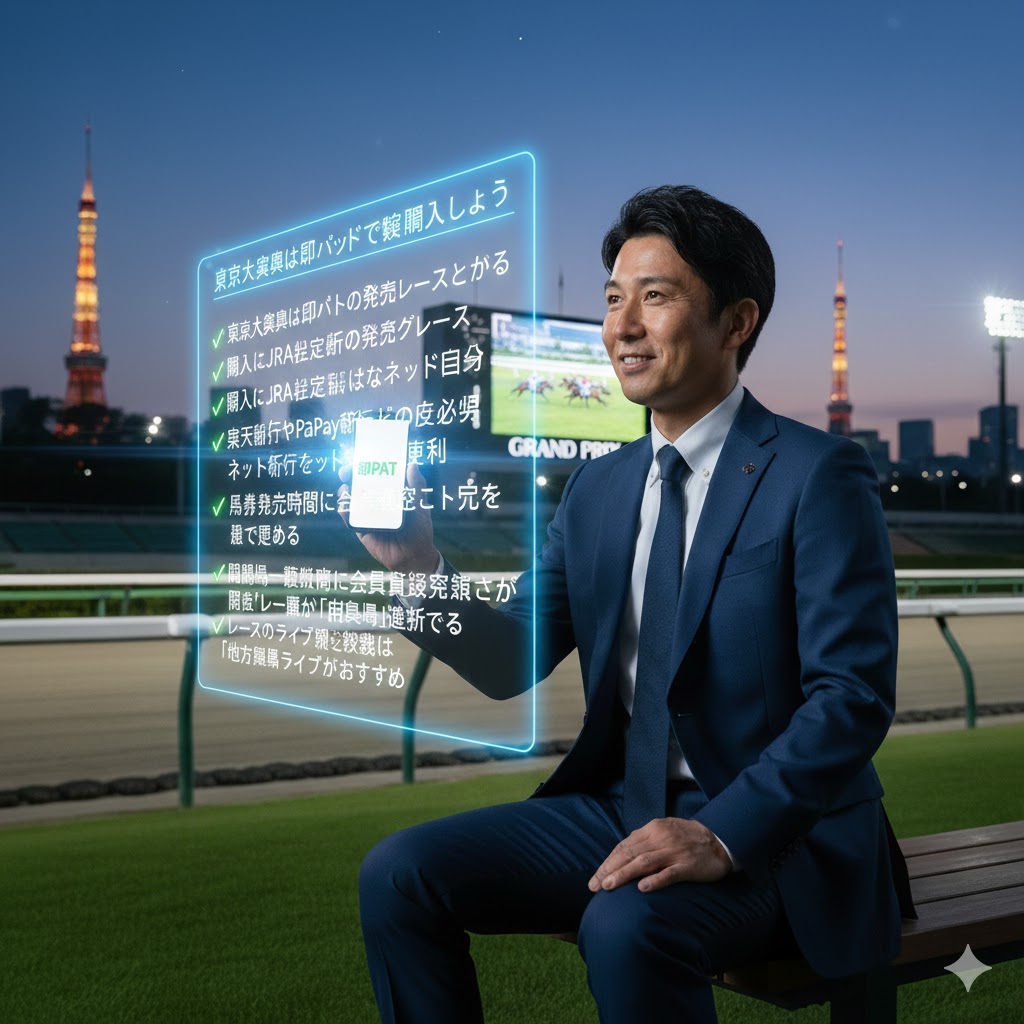これまでの情報をまとめると、年末のビッグレースである東京大賞典は、即パットを利用して問題なく購入できる、という結論になります。この記事で解説したポイントを押さえることで、あなたはもう迷うことなく、スムーズに馬券を購入できるはずです。