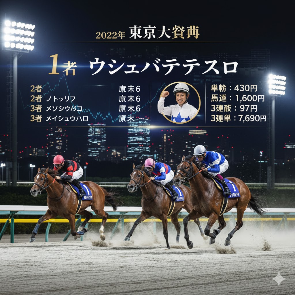 この2022年の東京大賞典は、単にウシュバテソーロがG1初制覇を飾ったというだけのレースではありませんでした。この勝利を皮切りに、彼は翌2023年には川崎記念、そして世界最高峰のダート競走であるドバイワールドカップをも制覇するという、日本ダート競馬史に燦然と輝く快進撃の、まさに本当の始まりとなったのです。