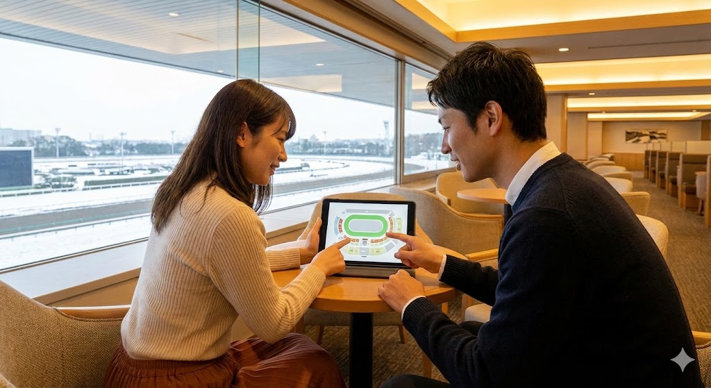 一歩足を踏み入れれば、そこは別世界。分厚いコートを脱ぎ、セーター1枚でリラックスできる暖かさが約束されています。各席には専用のモニターとコンセントが完備されており、暖かいコーヒーを片手に、オッズ変動やパドック映像、レースリプレイを手元で詳細に分析できます。これはもはや「観戦」というより、快適なオフィスで指揮を執るような体験です。